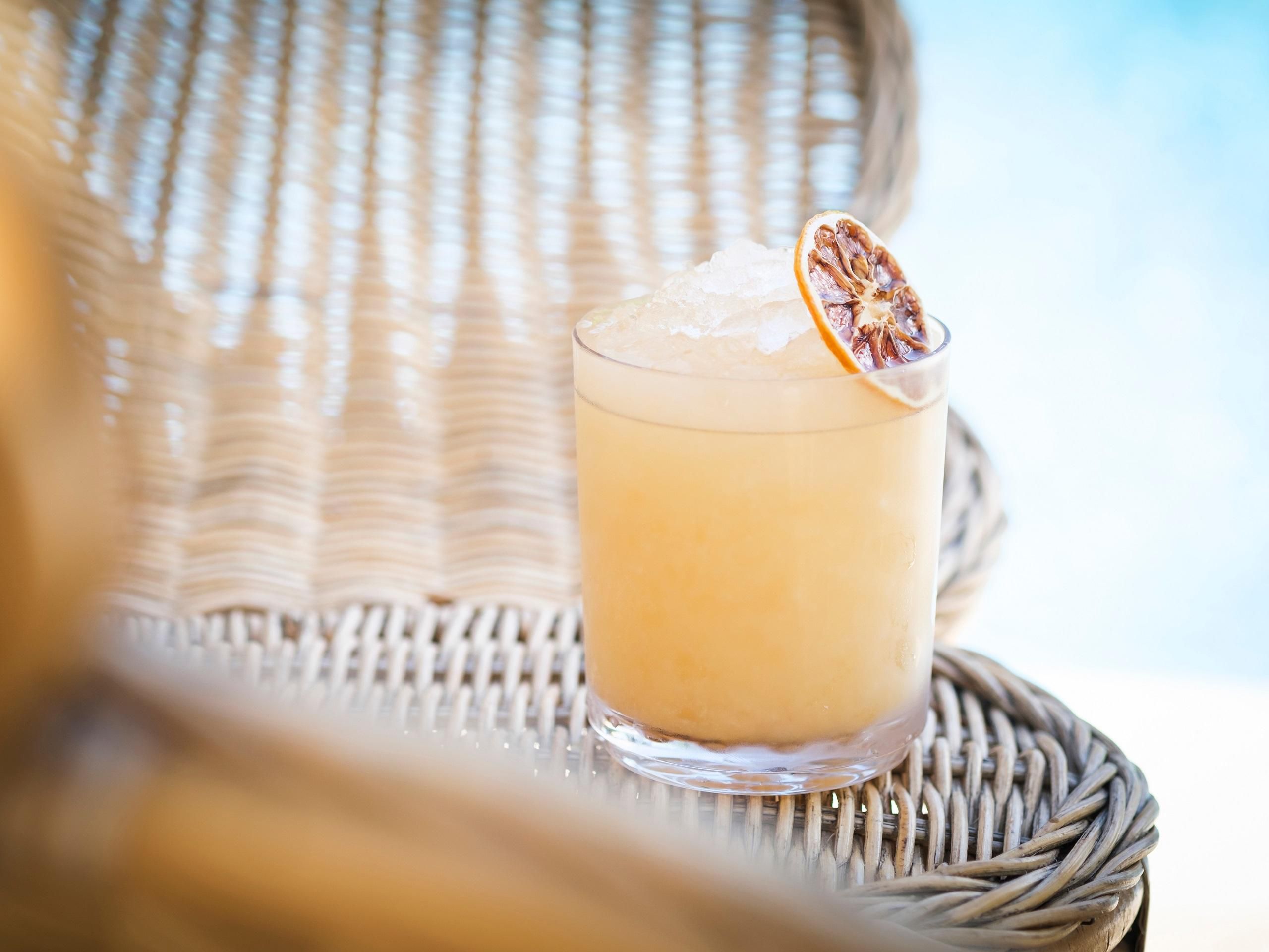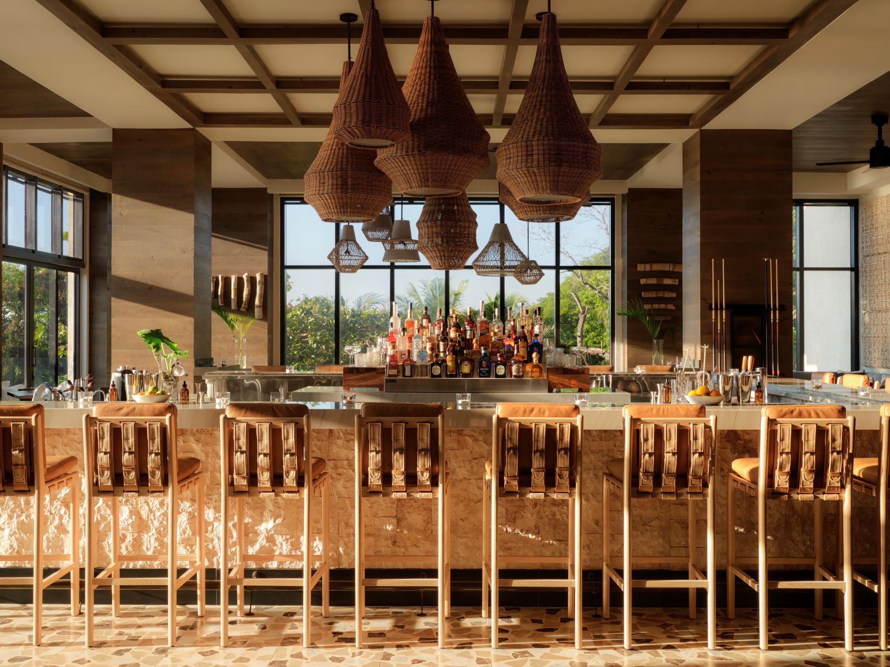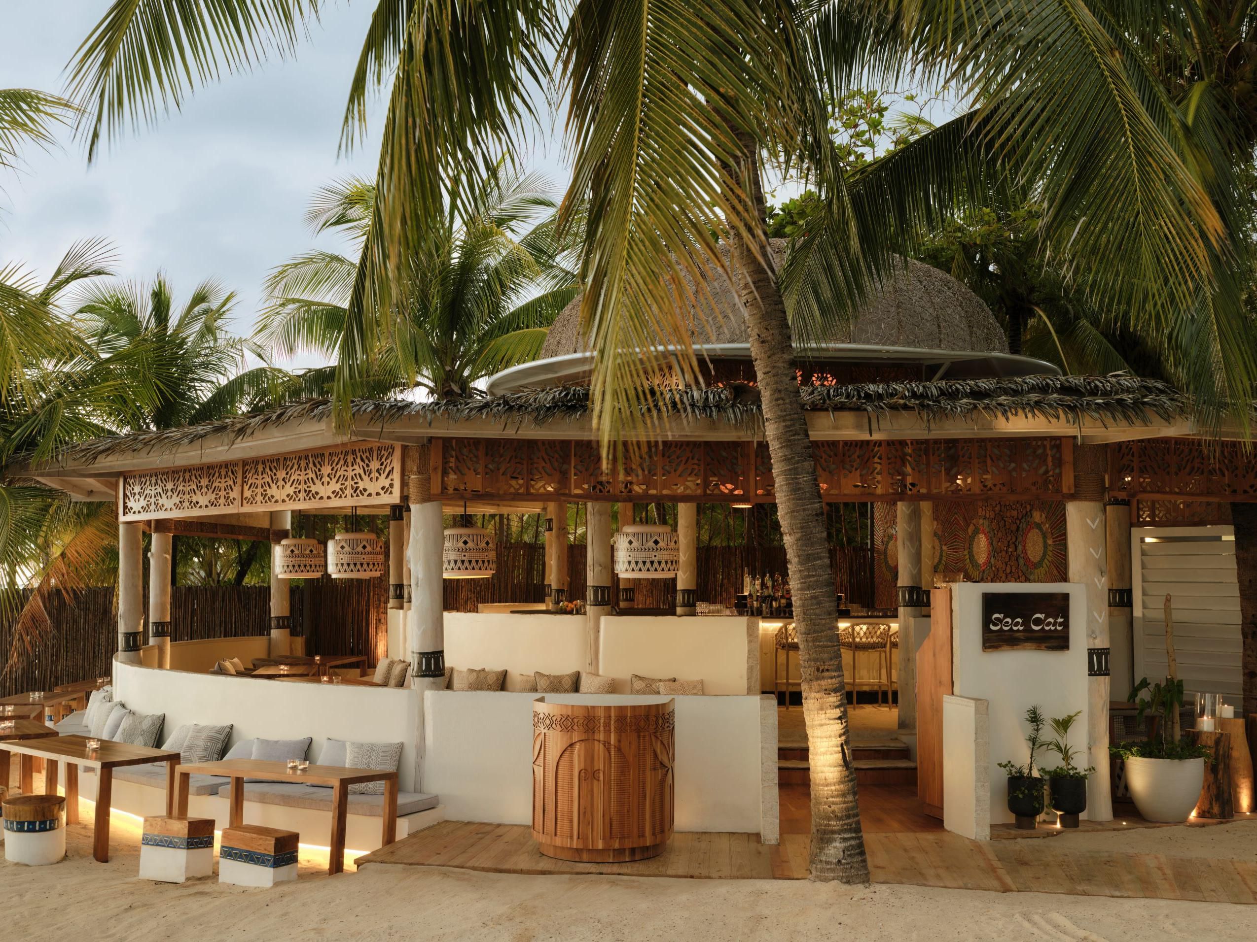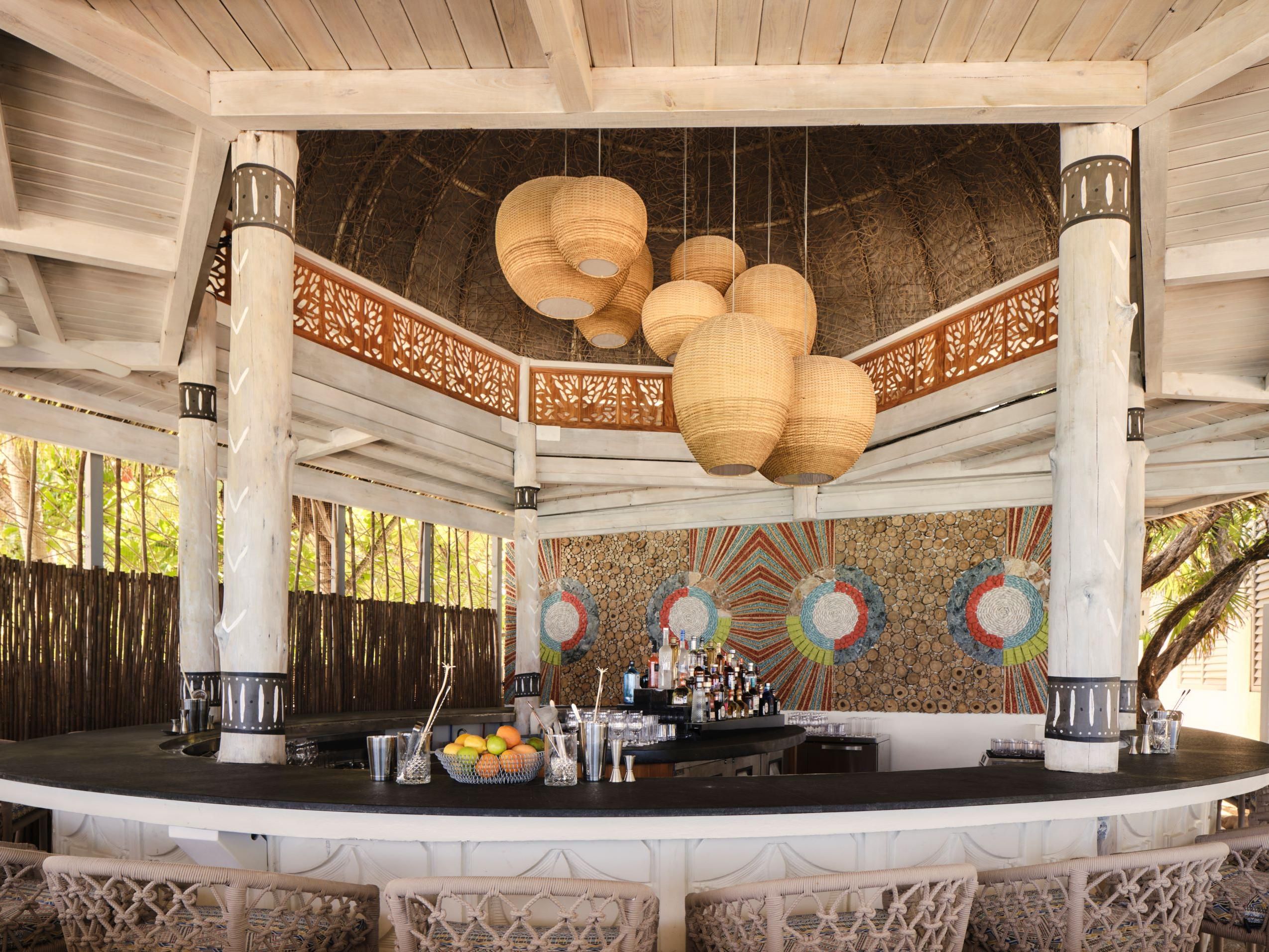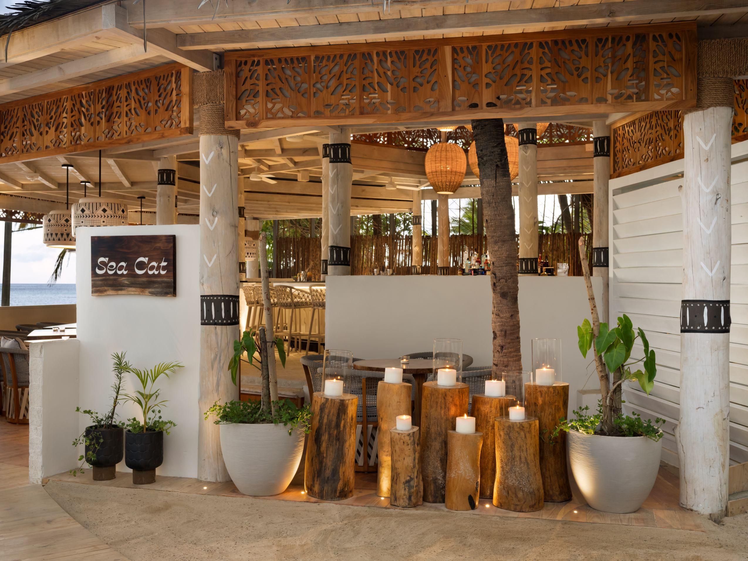 A stylish beachside bar with crafted rum cocktails and a carefree, barefoot-by-the-sea atmosphere.