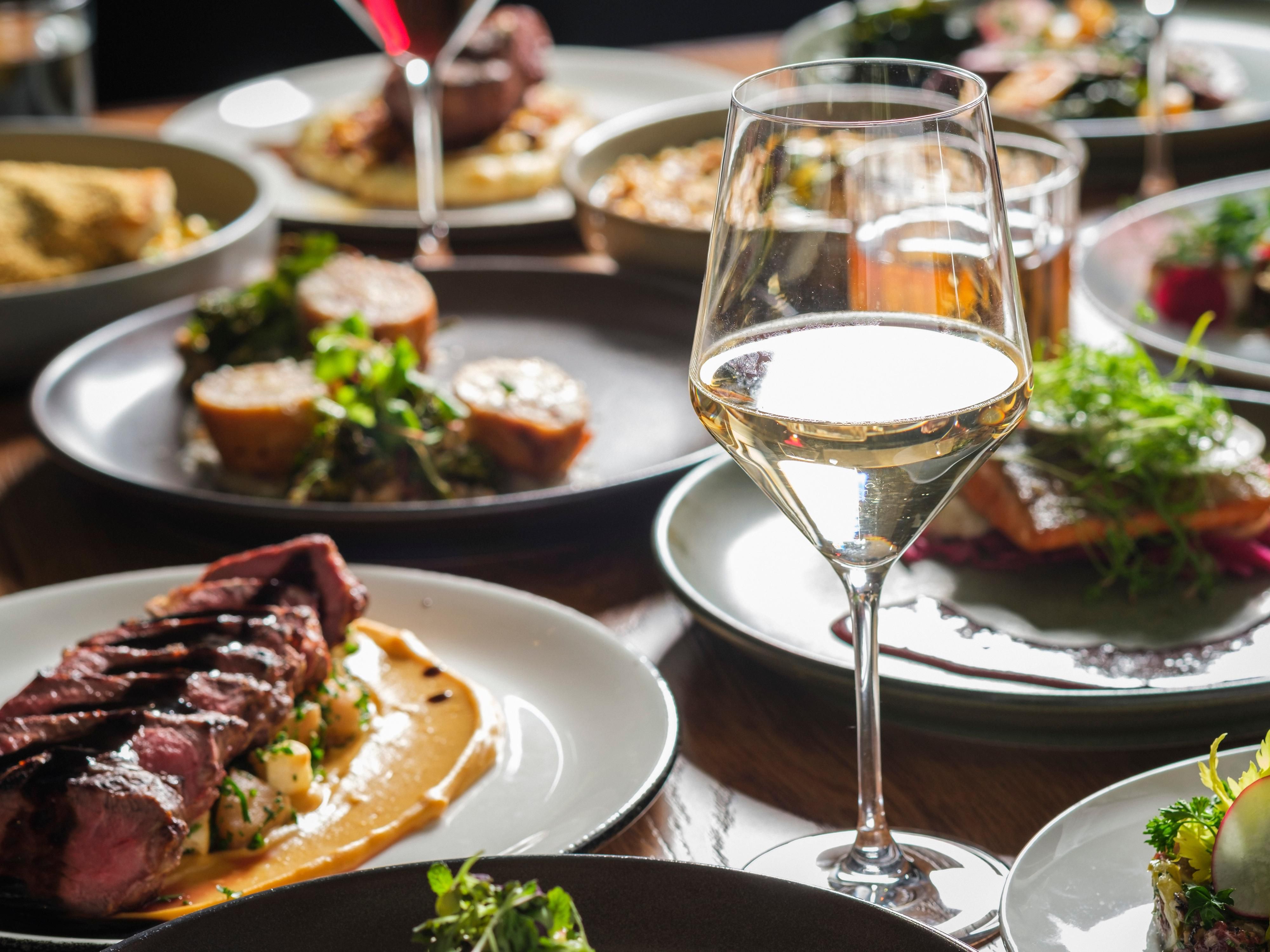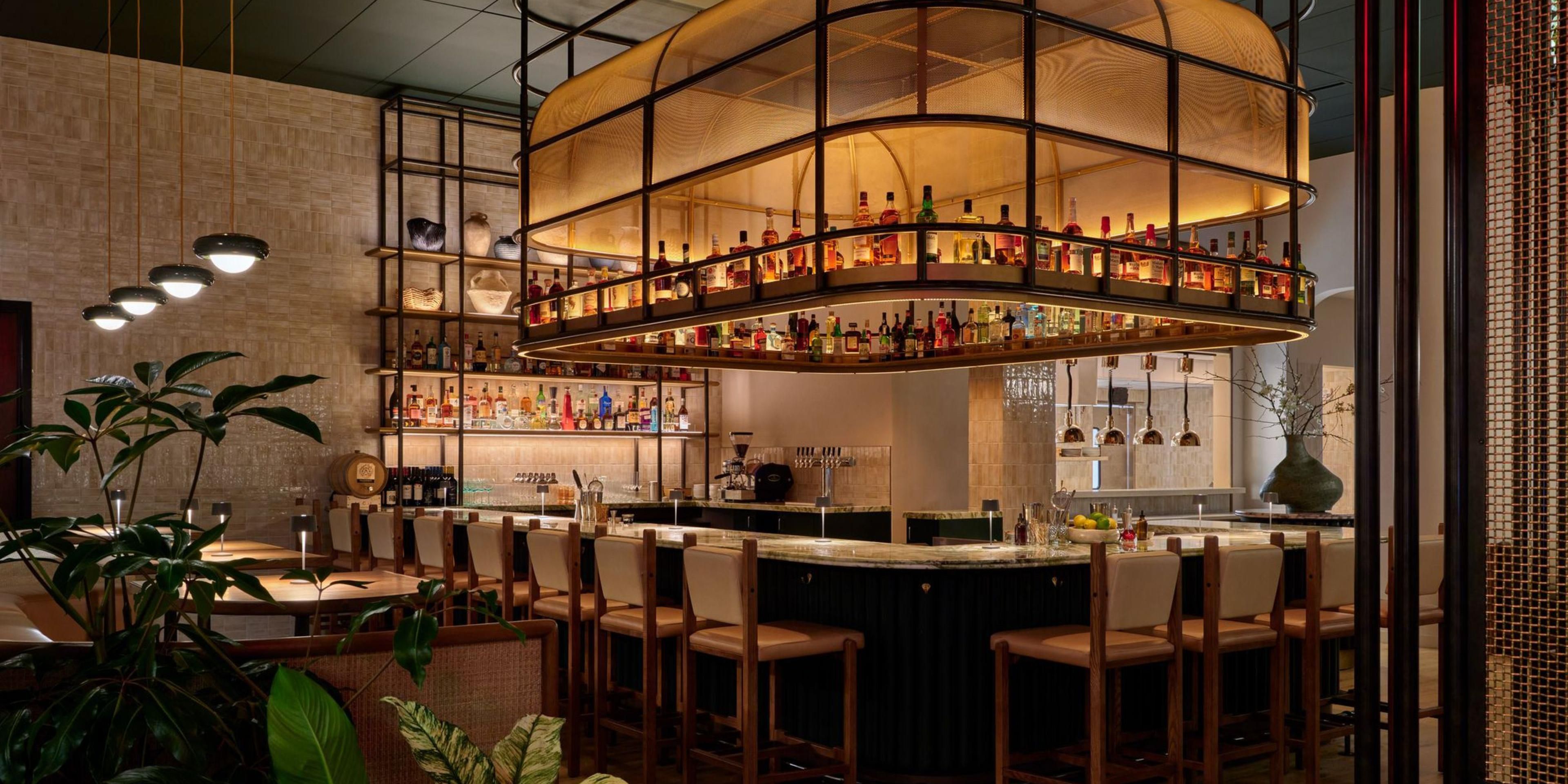 At The Caledonian locals and guests alike gather in our convivial dining room where warm wood furnishings, plush seating and ample greenery are in harmony with the large central bar that anchors the space.