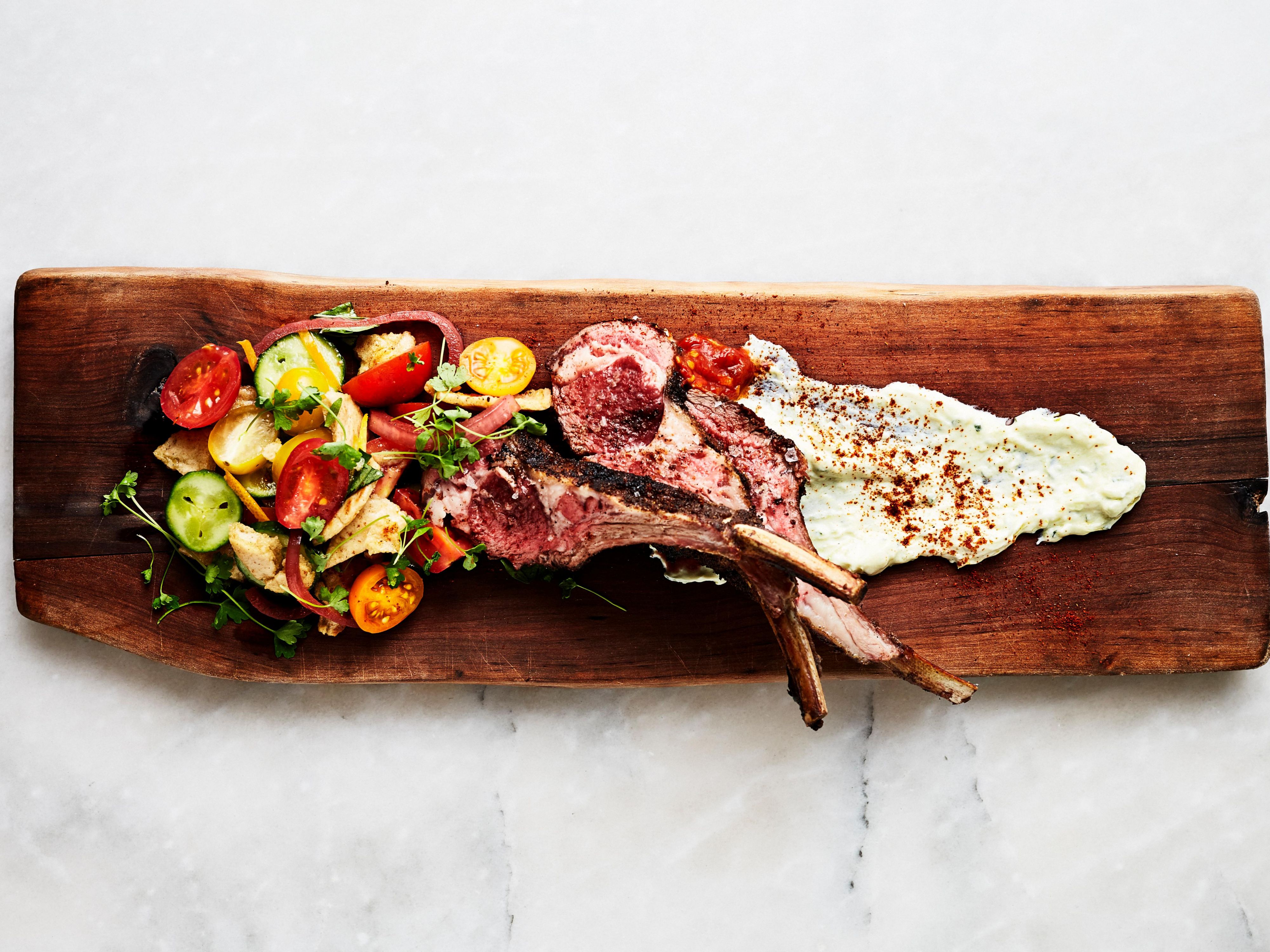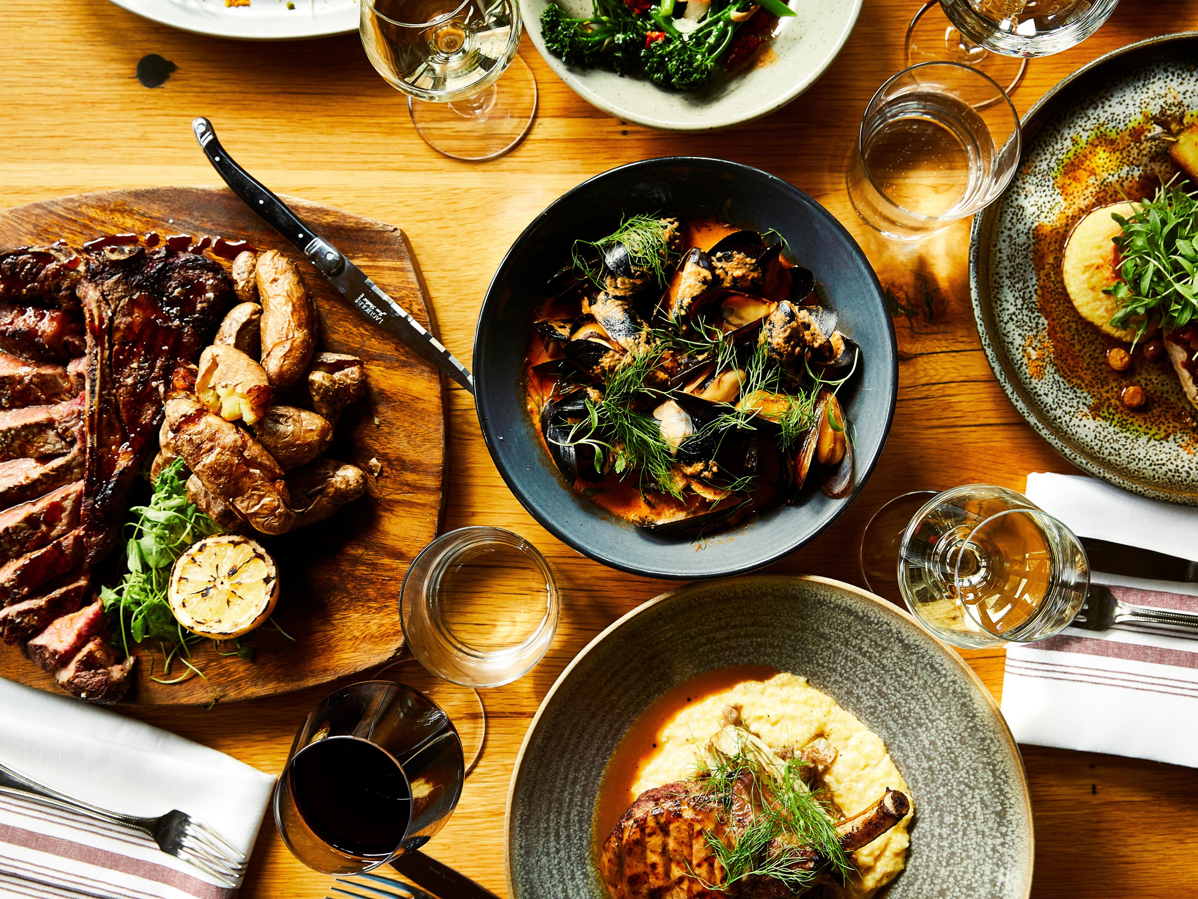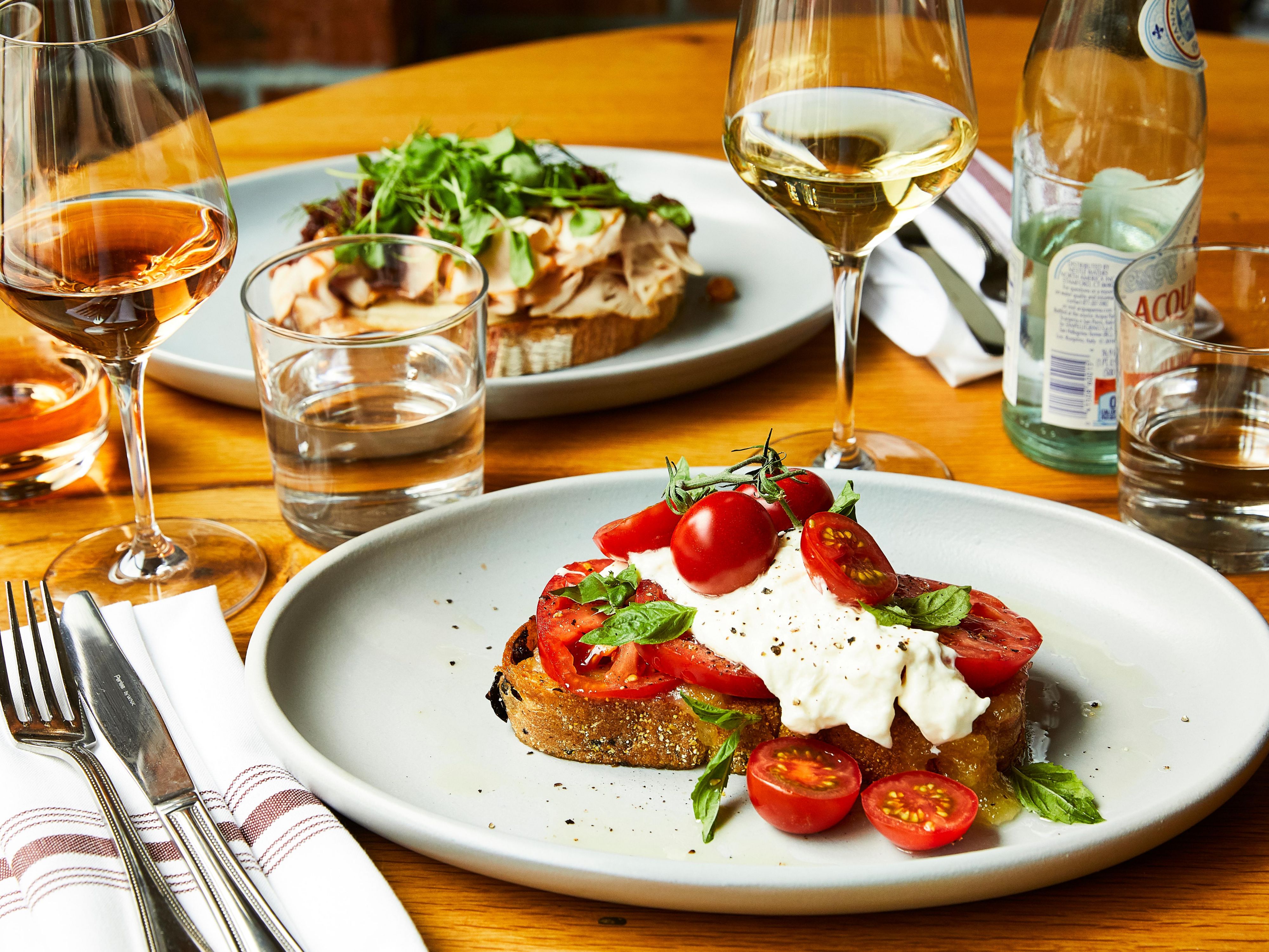 Seasonal Mediterranean inspired American fare prepared through simple, time honored cooking methods such as wood roasting, grilling, braising, preserving and smoking. Culinary inspiration extends beyond France and Italy to the rustic and robust flavors of Spain, North Africa, Greece, Morocco, Turkey and Israel, with ingredients sourced seasonally from local farms. At the heart of the kitchen is a custom wood burning oven and grill that is visible through vast windows in the main dining room.