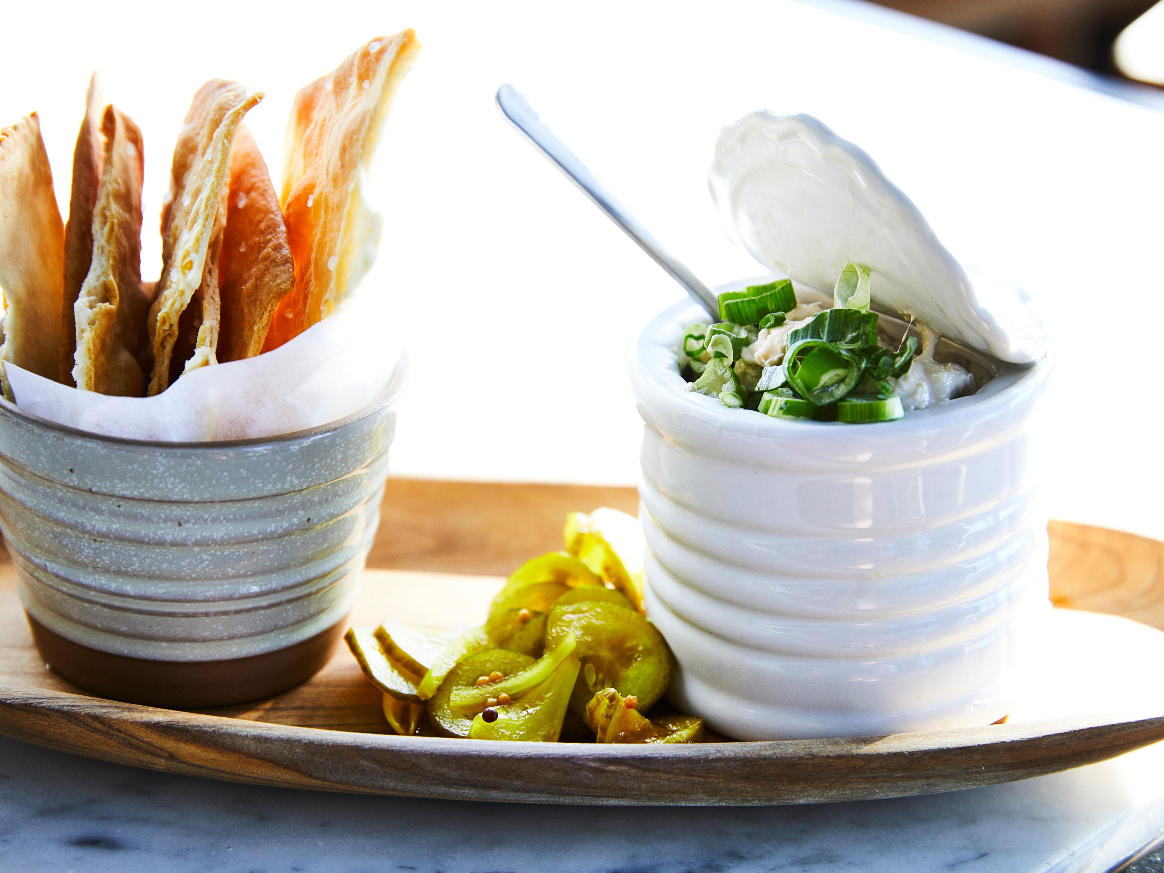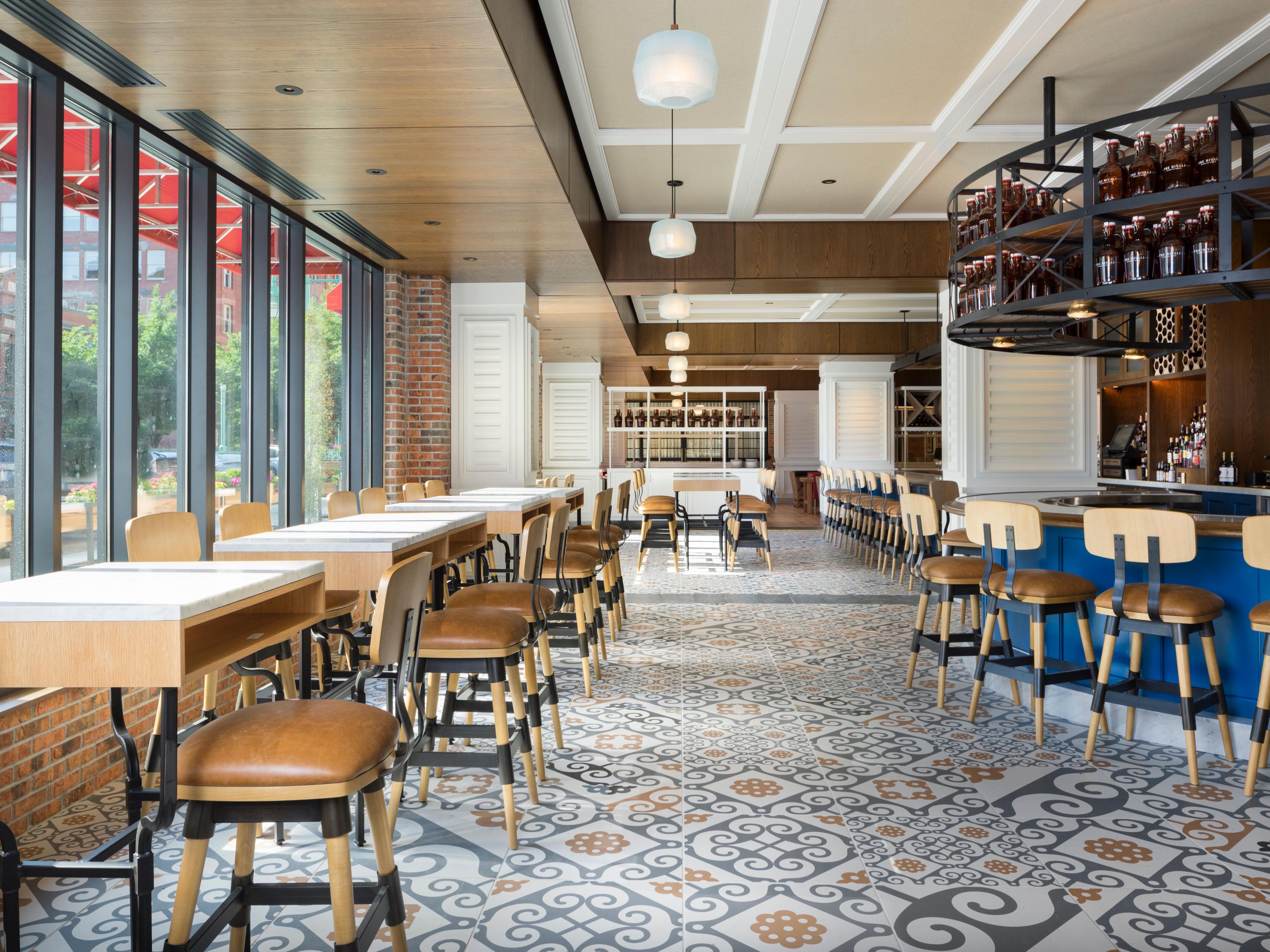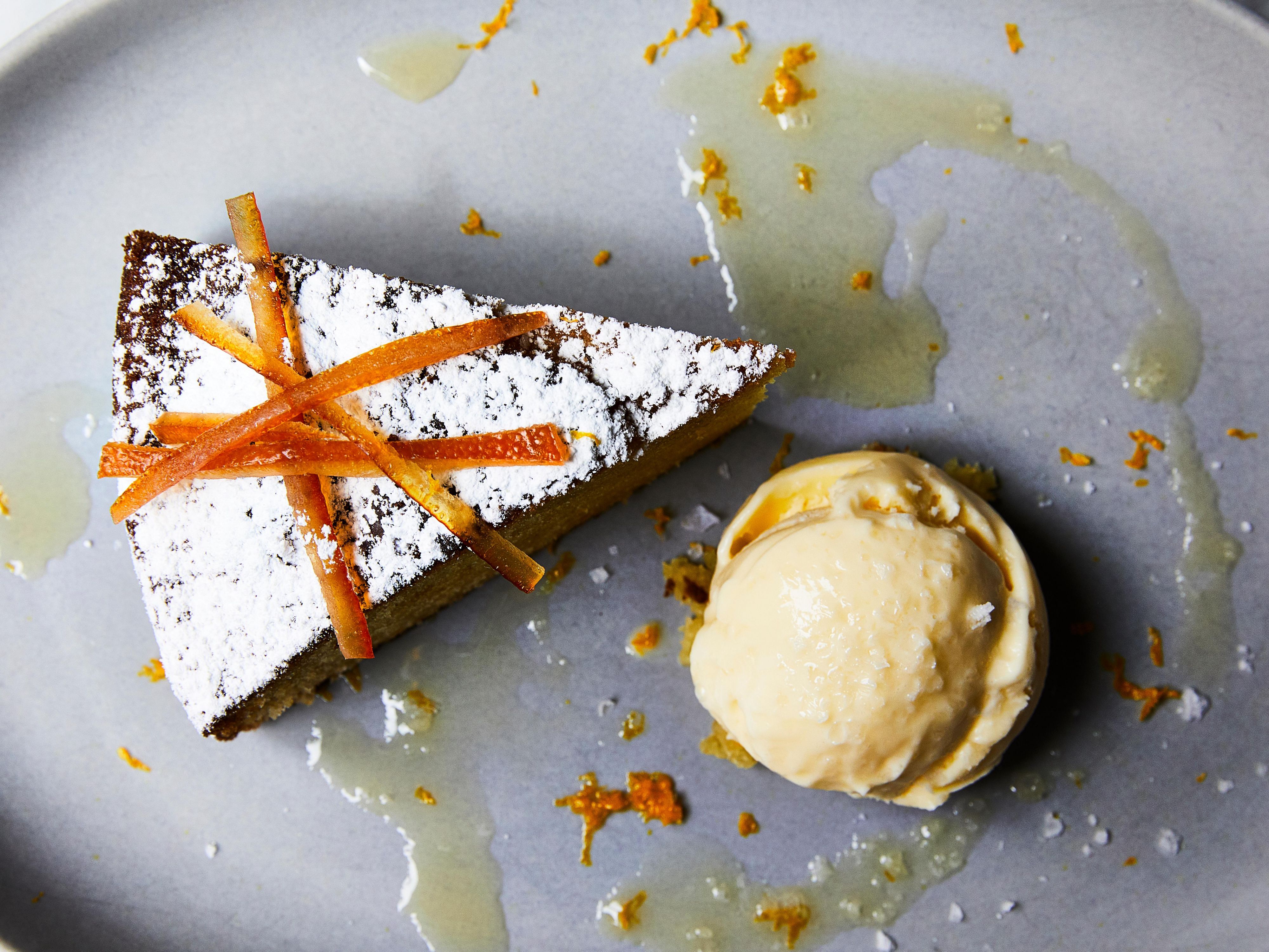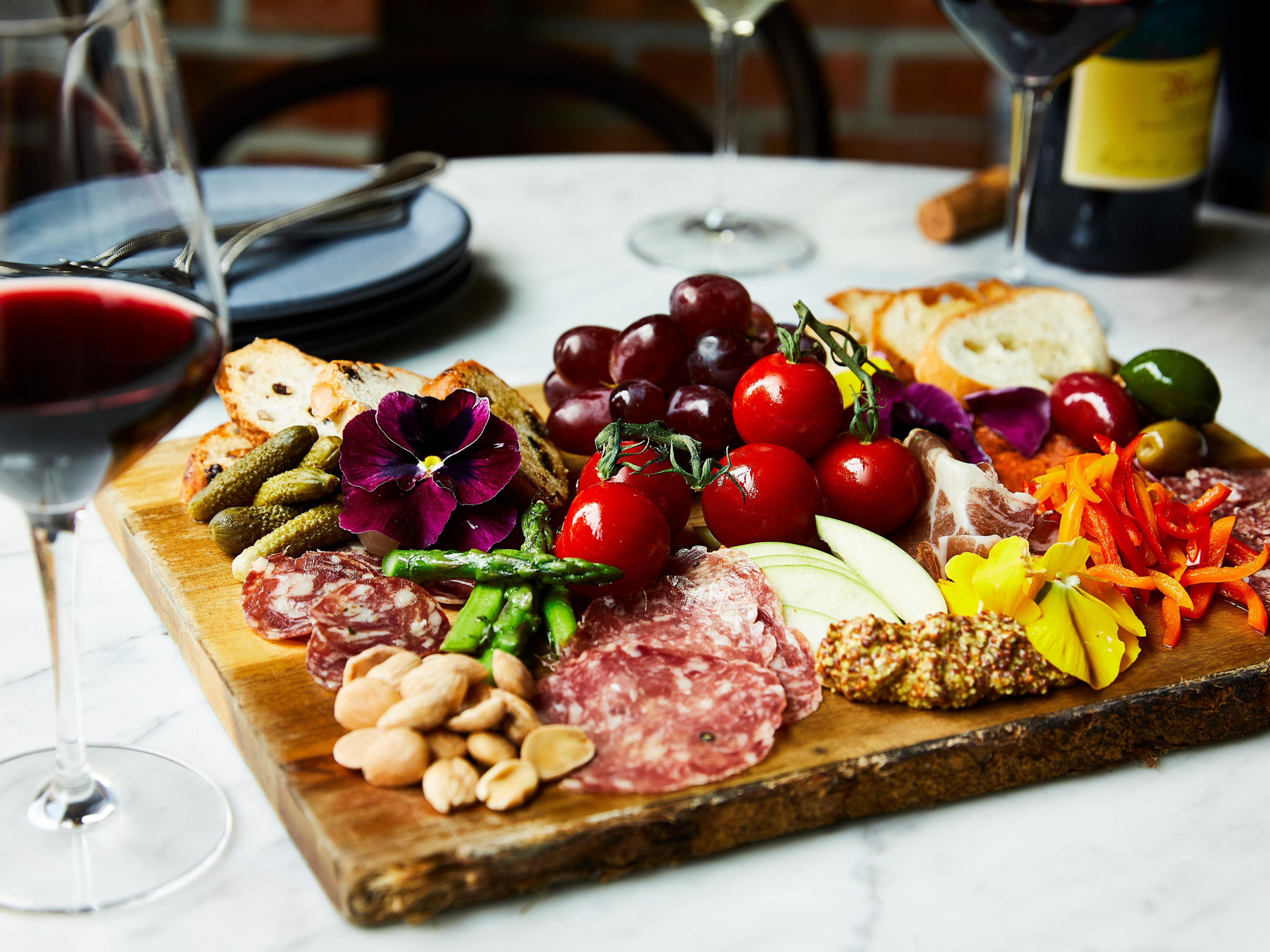 Seasonal Mediterranean inspired American fare prepared through simple, time honored cooking methods such as wood roasting, grilling, braising, preserving and smoking. Culinary inspiration extends beyond France and Italy to the rustic and robust flavors of Spain, North Africa, Greece, Morocco, Turkey and Israel, with ingredients sourced seasonally from local farms. At the heart of the kitchen is a custom wood burning oven and grill that is visible through vast windows in the main dining room.