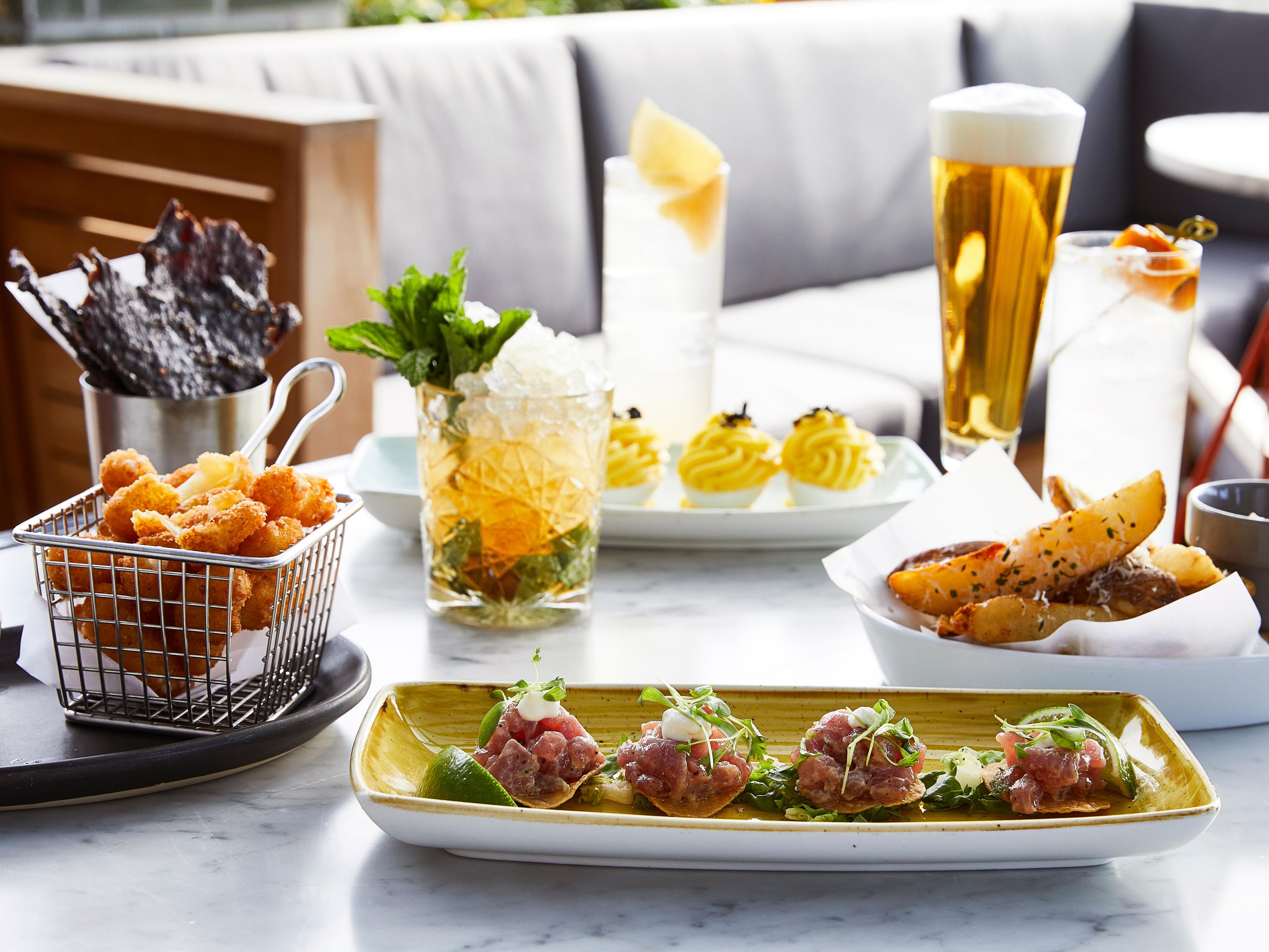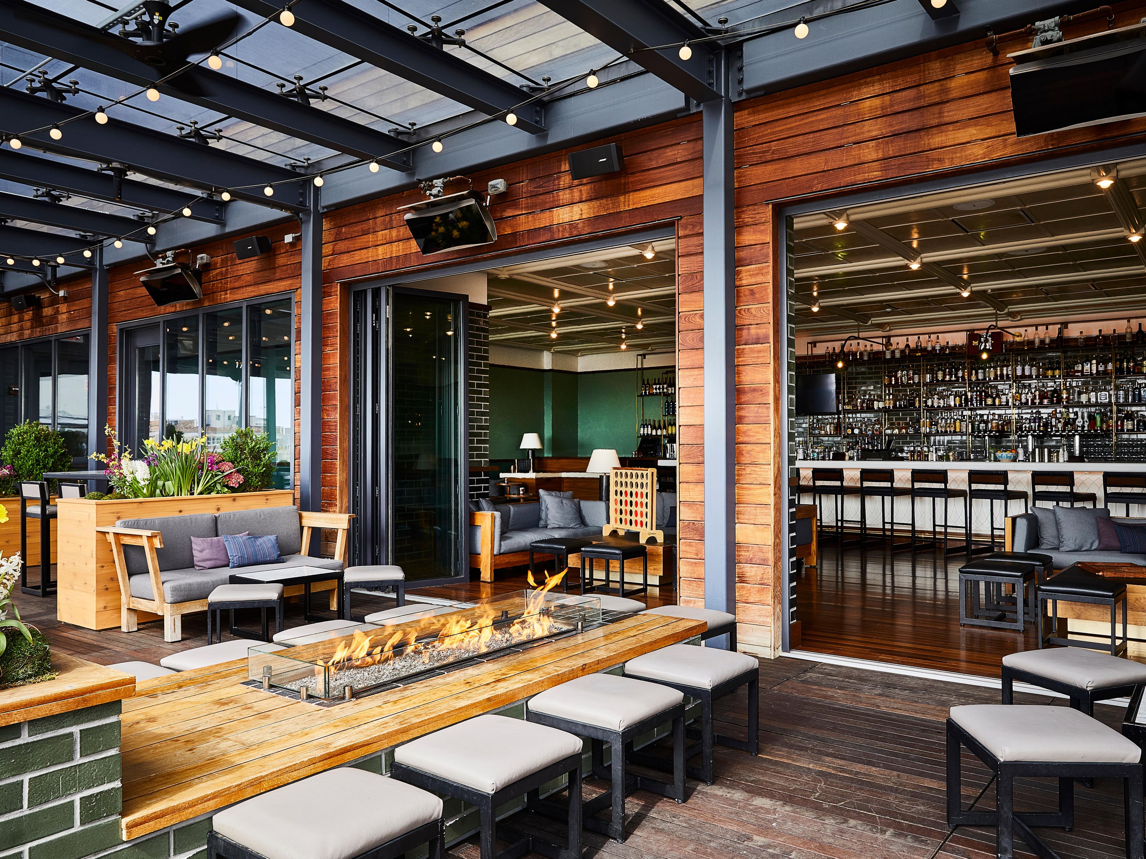 Welcome to The Outsider, the kind of place where you'll want to become an insider real quick. The indoor and outdoor rooftop restaurant and bar always has something going on, from backyard barbecues on Sundays to shuffleboard tournaments. Glass walls make it a great destination in Spring, Summer and Fall. A trellis keep things comfortable in the warmer months, while cold temps brings fire pits and blankets that make being outside just as cozy as in.