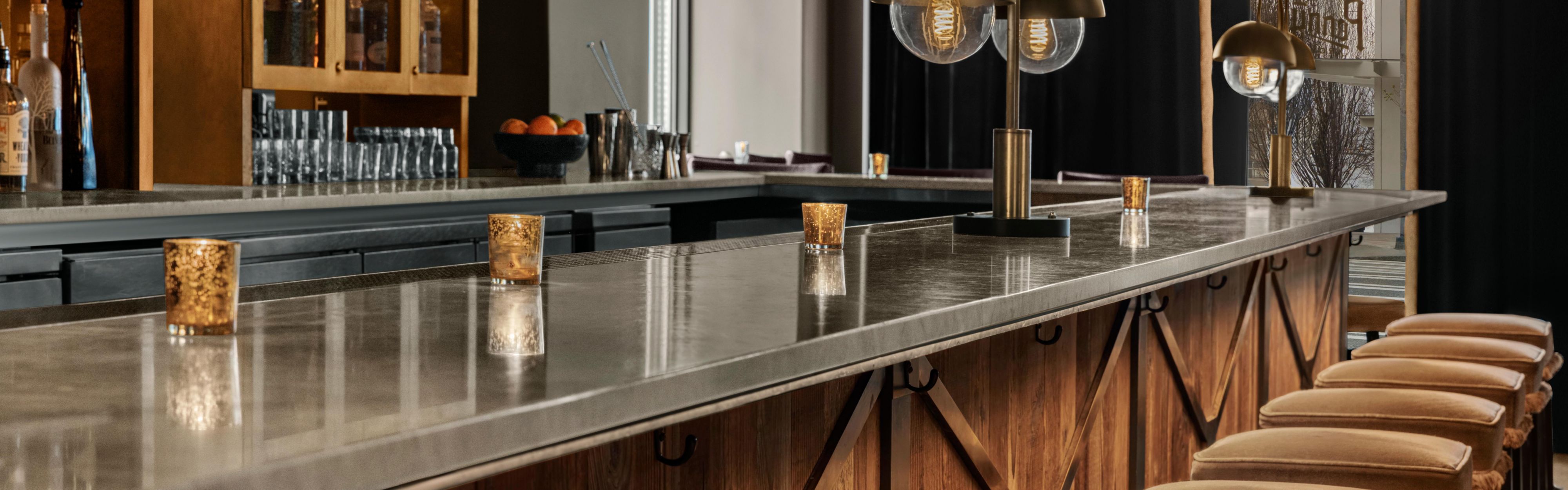 With the air of a social salon, Pennyroyal evokes European style bar life. An interior of dark woods and exposed brick sets the table for the seasonally inspired cocktail program, which focuses on aged spirits, house made infusions and sharable punches served in vintage glassware. A selection of approachable yet refined bar snacks rounds out our beverage offerings, including the Taleggio Cheeseburger, Dungeness Crab and Sunchoke Dip, Greek Lamb Meatballs and Scotch Olives.