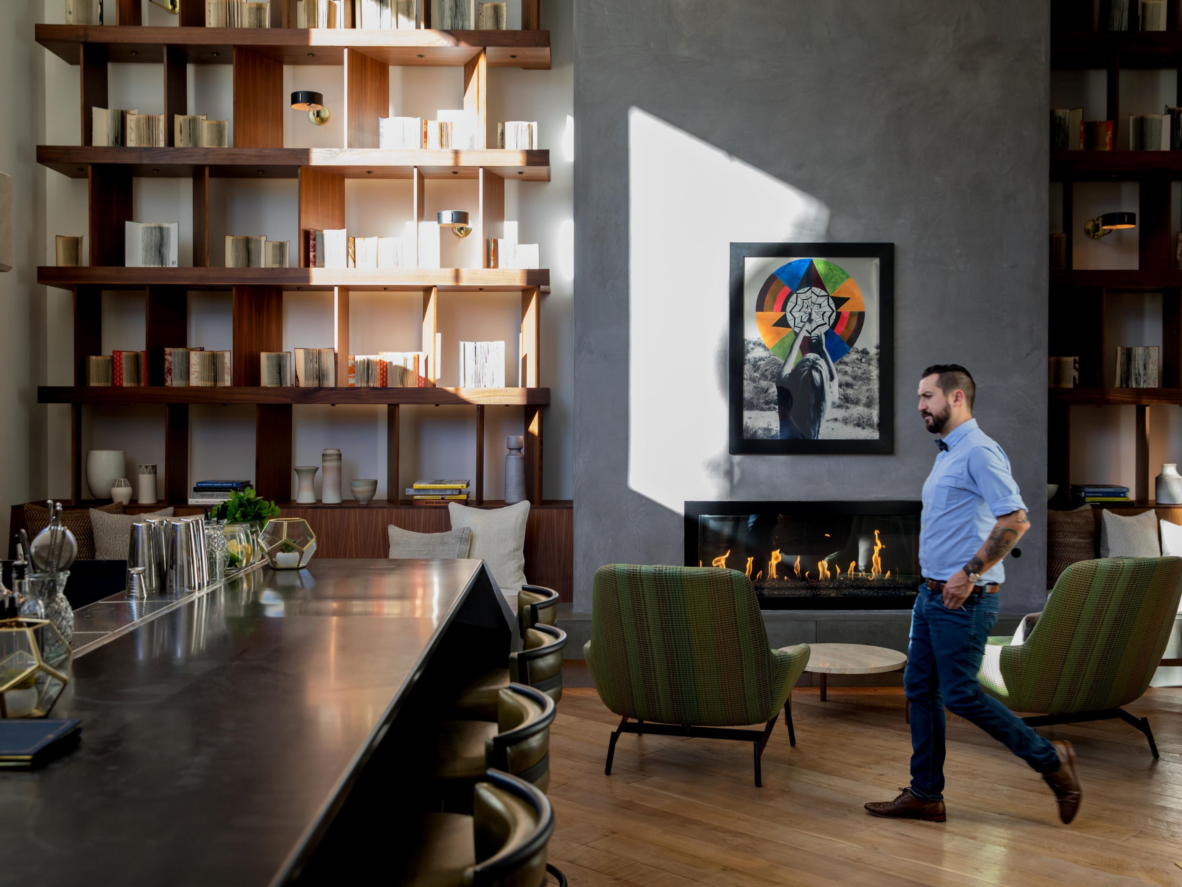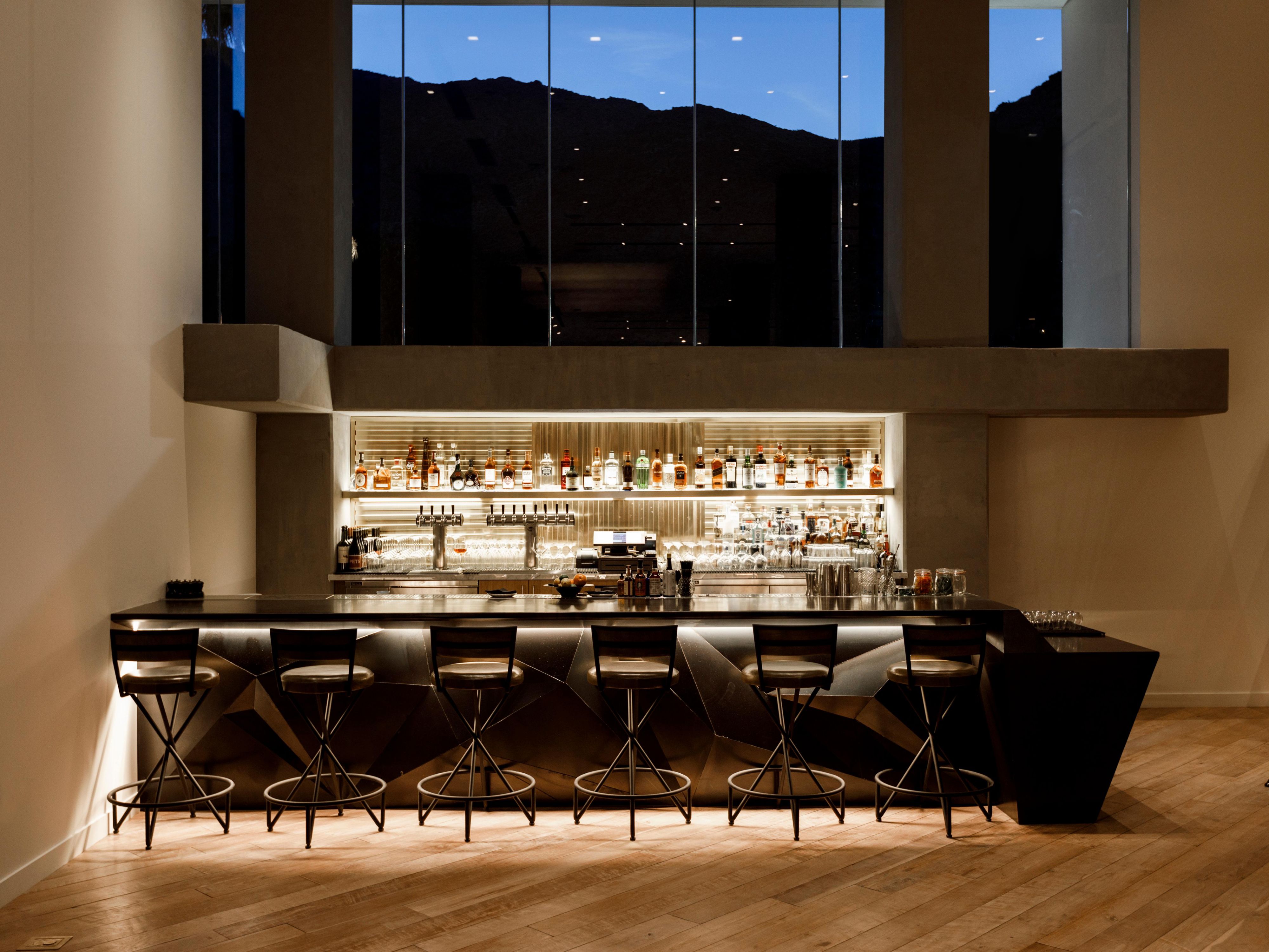 The Rowan’s lobby bar welcomes with inspiring cocktails based on classic recipes and a two-story picture window where guests can peer into the desert.