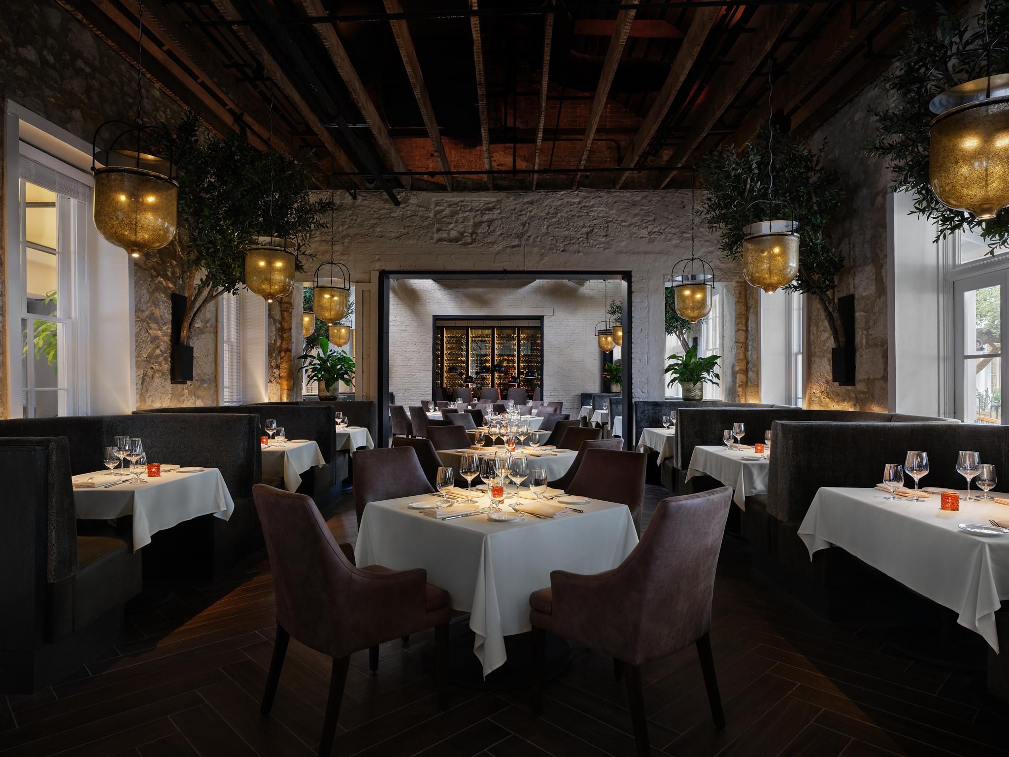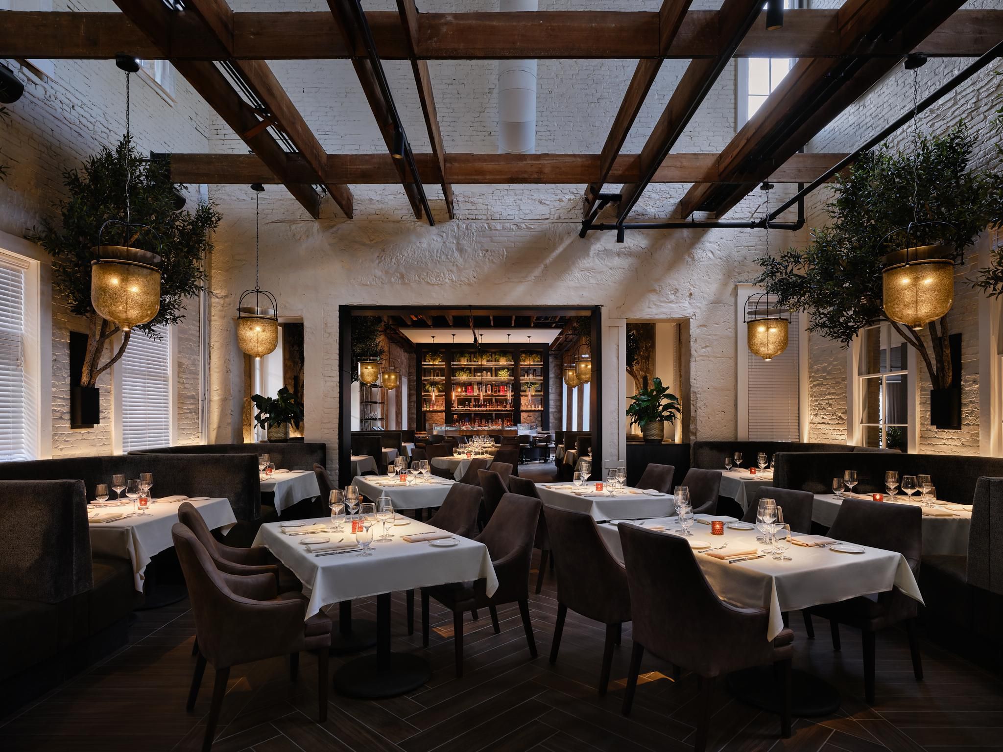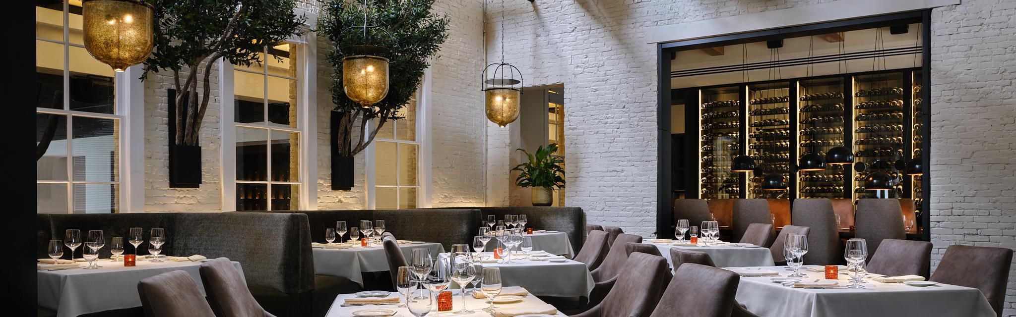 Tucked inside a 19th century schoolhouse, our two level fine dining steak and seafood restaurant is a destination. Many of the original architectural details remain, including the vaulted exposed wood ceiling. A curved oyster bar greets diners with the freshest catches of the day and the back of the space houses a gorgeous wine room and private dining space.