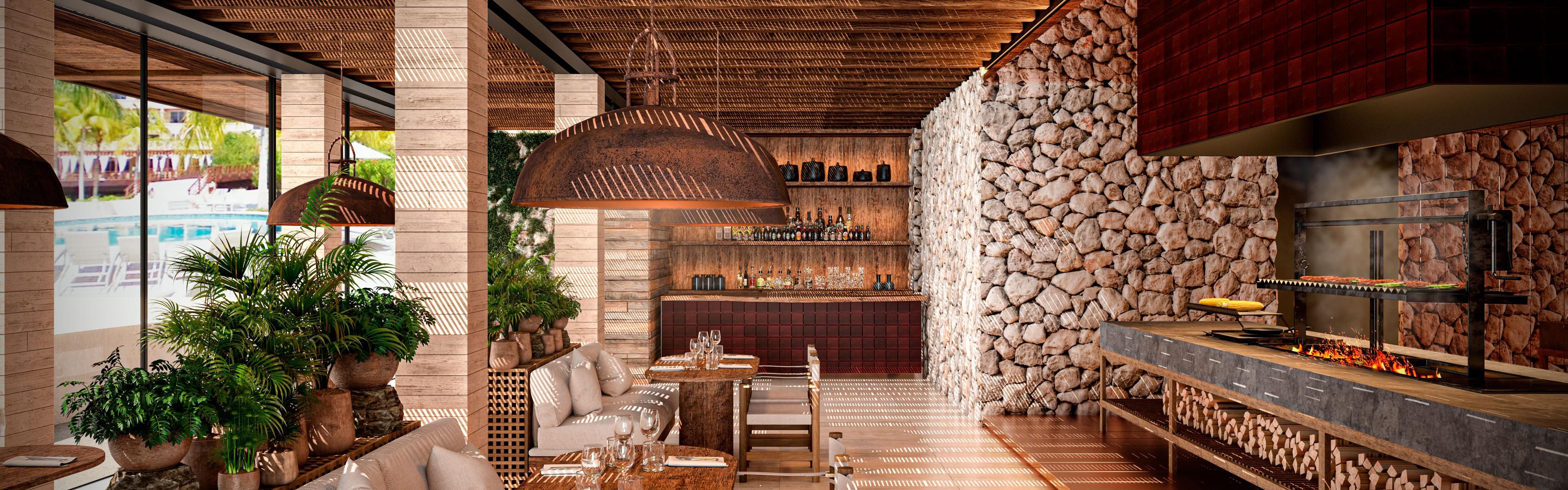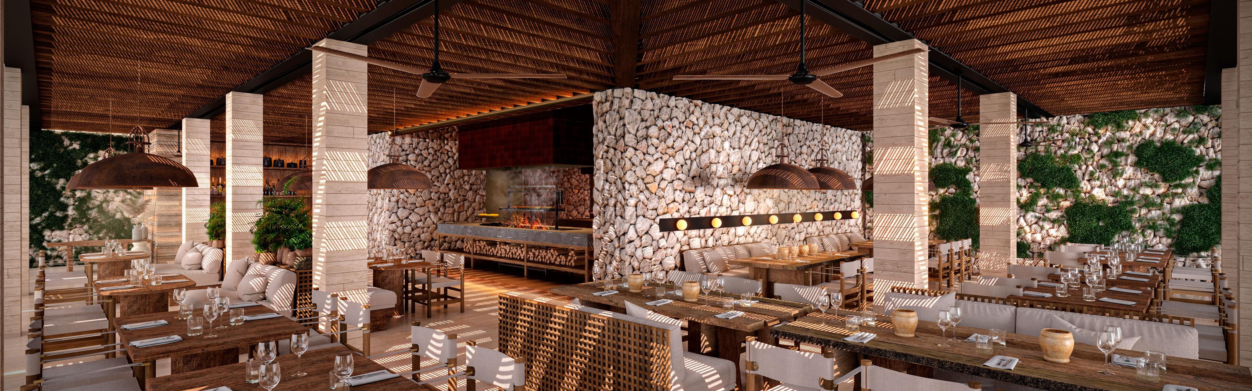 El Carnal blends refined elegance with a warm, inviting atmosphere. The design features natural stone walls, rich wooden accents, and lush greenery, creating a sophisticated yet rustic ambiance. Savor expertly grilles steaks, fresh vegetables, and exquisite desserts. The open grill enhances the dining experience with tantalizing aromas. Whether dining indoors or al fresco, indulge in an elevated culinary journey celebrating the best of steakhouse tradition in an exquisite setting.