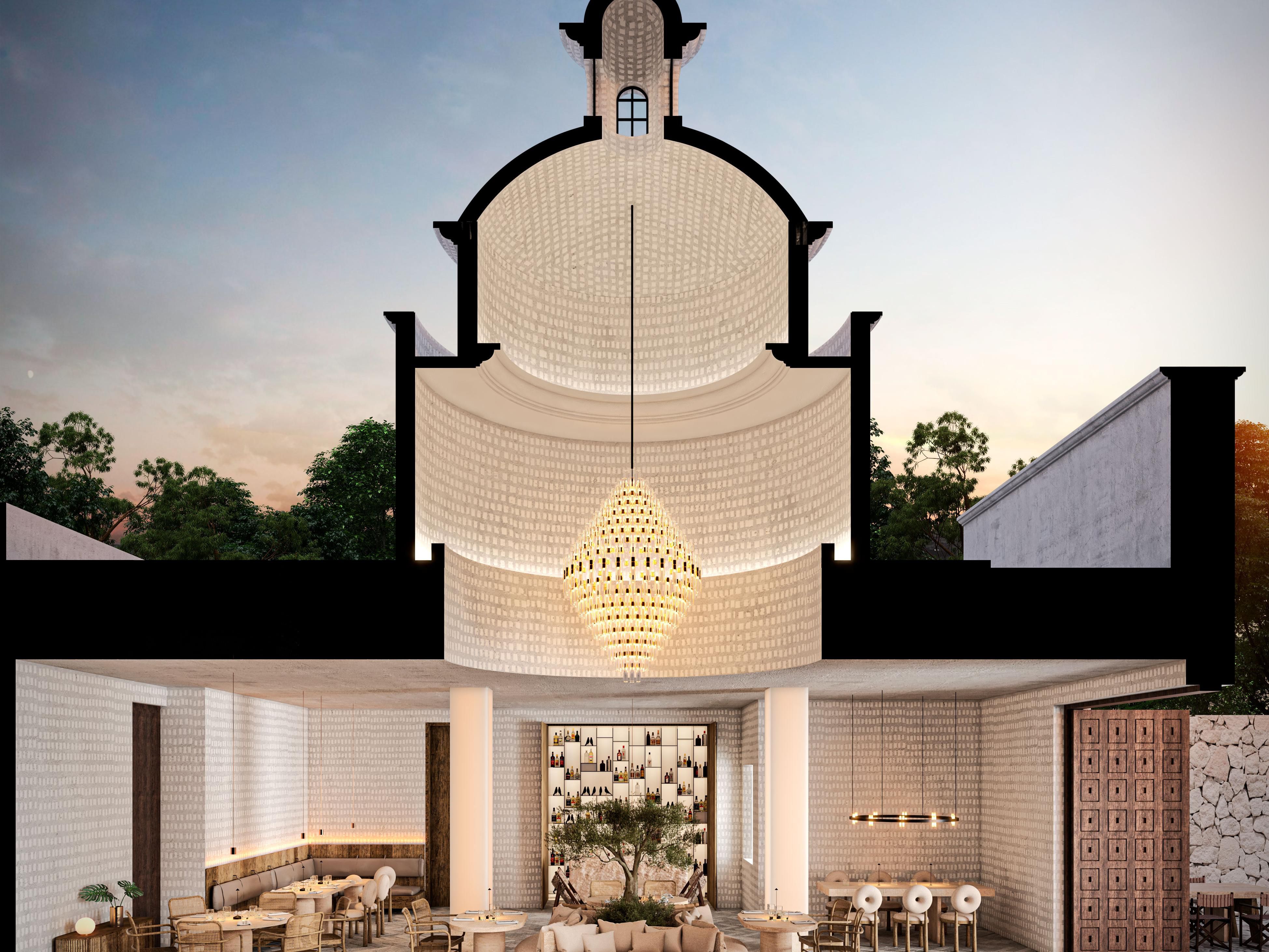 Nestled in the chapel building, Bacetto offers a warm and rustic Italian dining experience with roasted fish, meats, and reimagined classic cocktails.