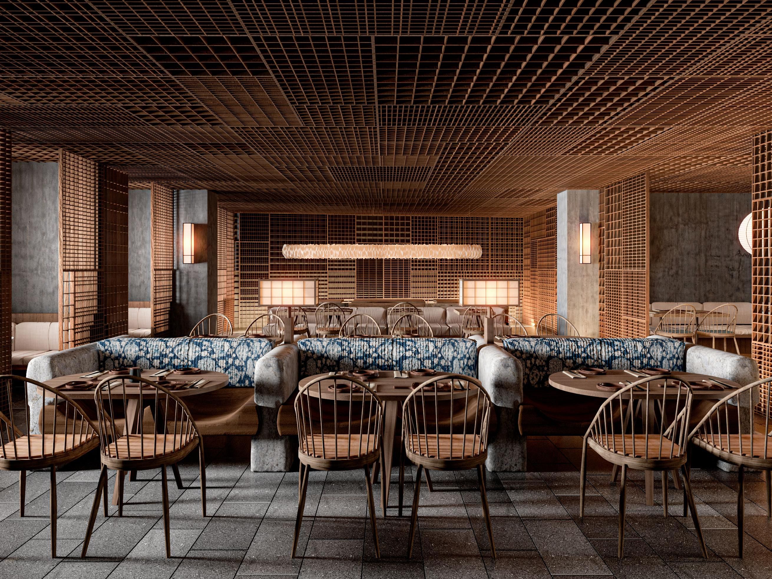 The Asian fusion cuisine is served in a setting that balances tradition and modernity, perfect for an exotic culinary experience.
