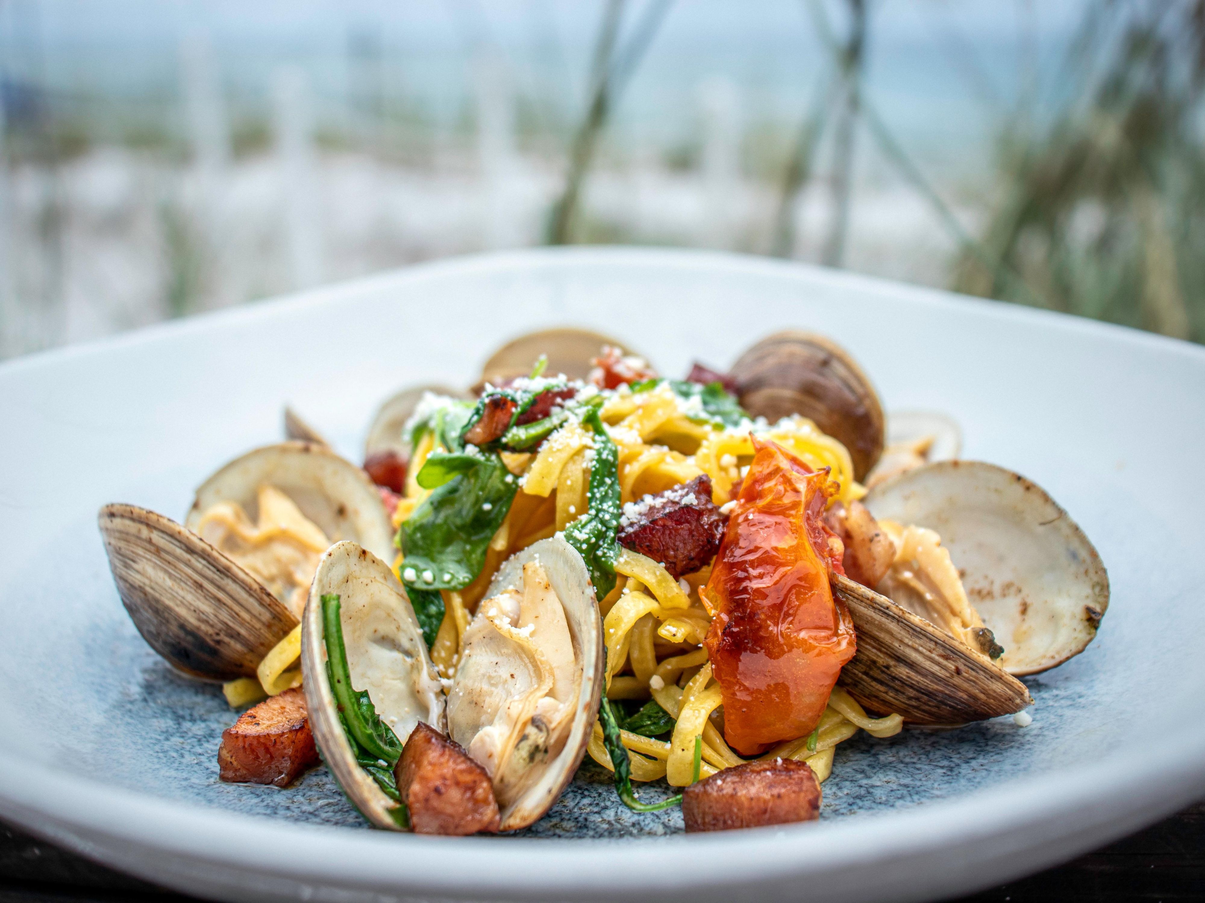 Steps from the sand, we offer lunch and dinner daily, with sweeping ocean vistas by day and a crackling firepit by night.