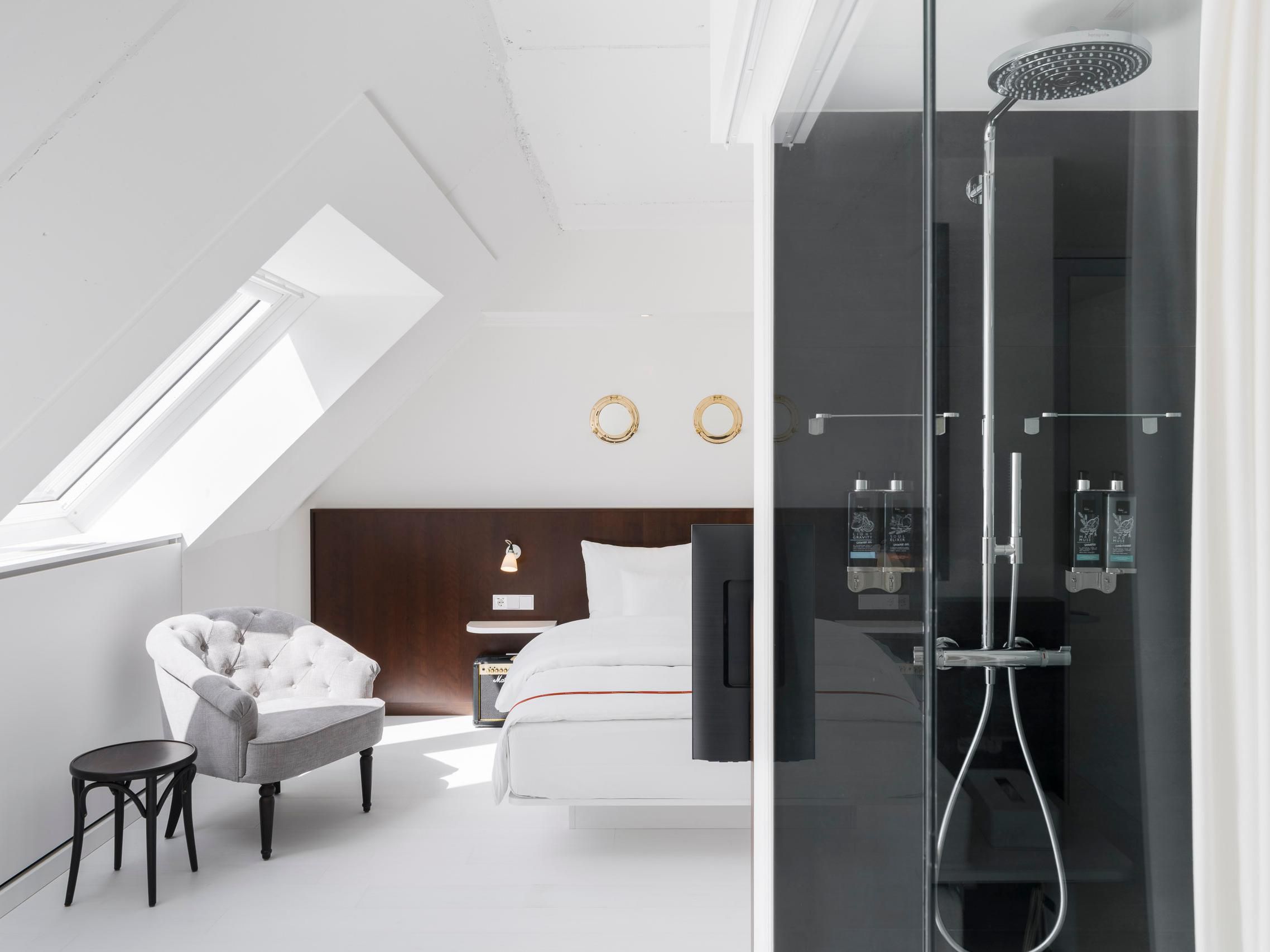 Every room is a haven of calm after a busy day in the city. Step inside, kick off your shoes and dive into the cosy, oversize bed, complete with a big, fluffy duvet. Warm wood panelling, a hardwood floor and characterful touches add warmth and texture to the atmosphere.
