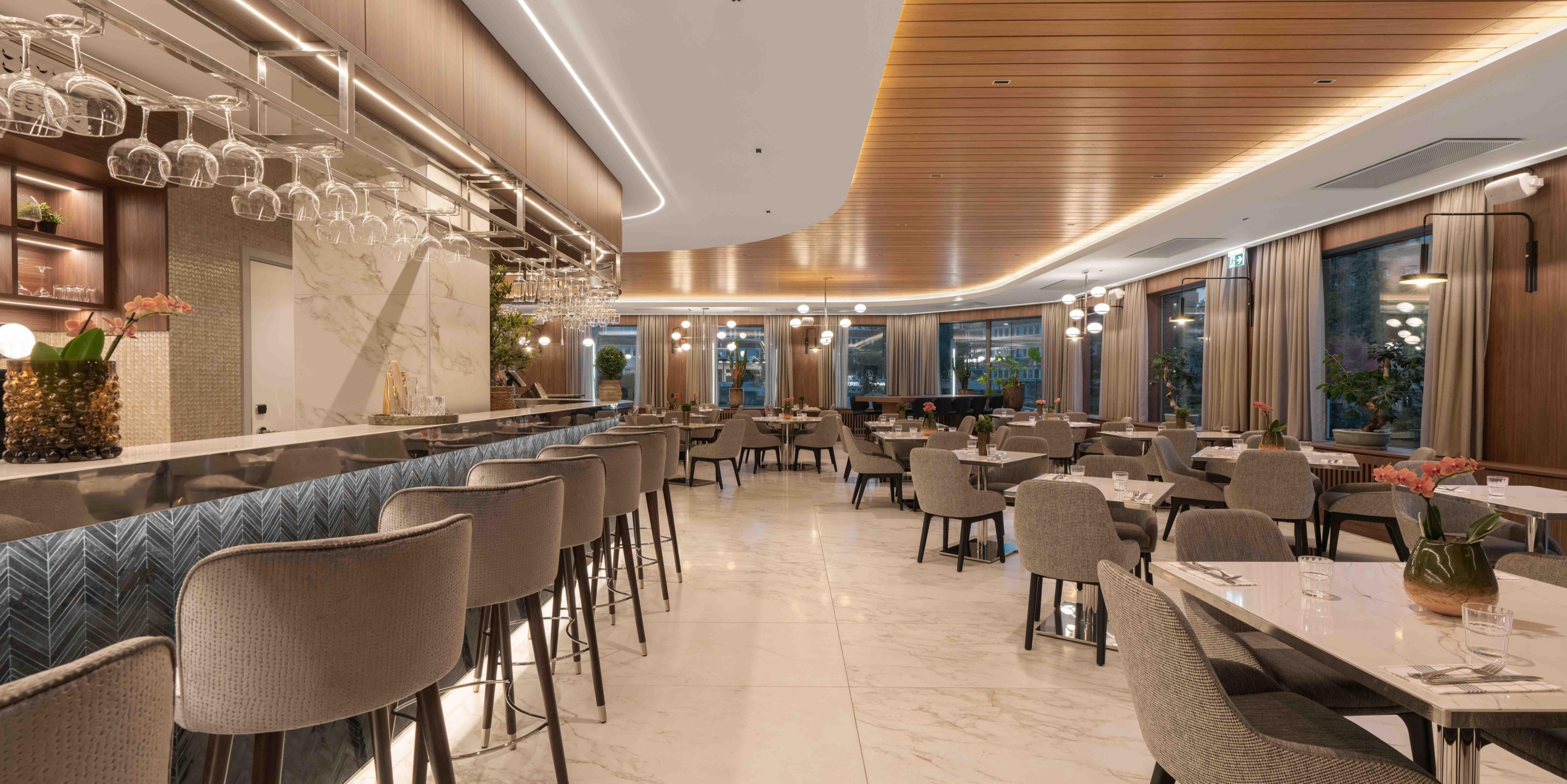 The hotel restaurant blends sophisticated European flavours with a Nordic flair in an elegant setting. Open for breakfast, lunch, dinner, and evening cocktails, our 110 seat restaurant, cosy bar, and inviting lounge welcome hotel guests and locals alike. Enjoy a menu curated by our MasterChef, perfect for corporate events, business lunches, or leisurely family dining. It's your all day destination for exceptional culinary experiences.