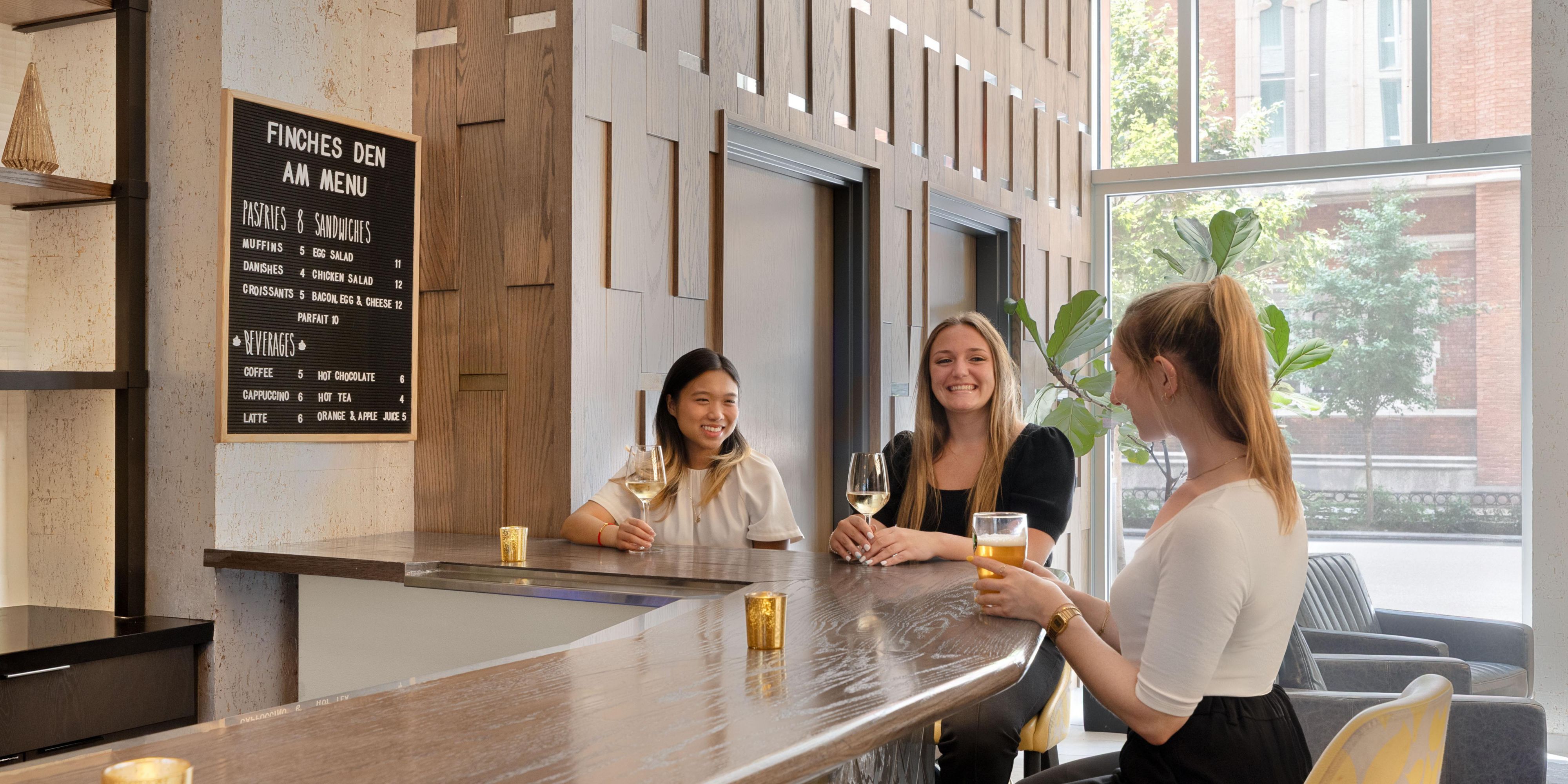 Savor dining at Finches Den, our signature restaurant near Times Square. Start with barista-style coffee and breakfast, enjoy small plates, and unwind with handcrafted cocktails. Relax on our seasonal outdoor patio and soak in the vibrant NYC atmosphere.