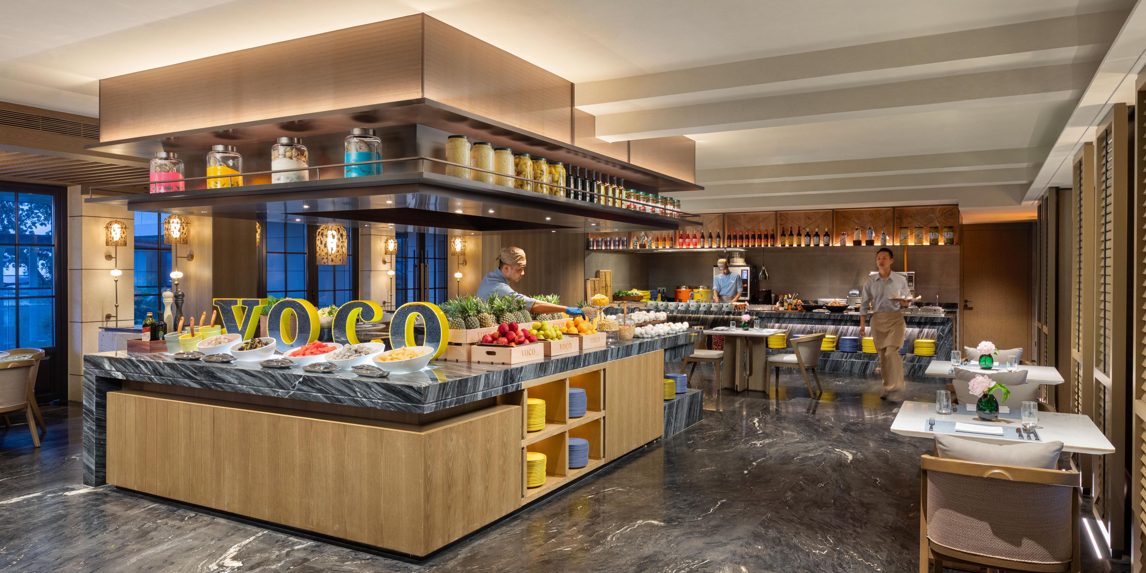 位于酒店5层的味餐厅,为您提供多元化自助早餐、自助晚餐。餐厅融合海南当地特色经典美食及当季高端食材,由经验丰富的大厨精心烹制,不时不食的烹饪理念和丰富多样的菜品吸引着宾客味蕾,打造从日出到星夜的味觉环球之旅。开放式的空间设计与通透光影为基调,串联起山海 度假的悠闲韵律,在山海云影间开启味觉与视觉的双重盛宴。室内外共配备132个座位,柔和的灯光,为宾客打造舒适愉悦的用餐氛围。