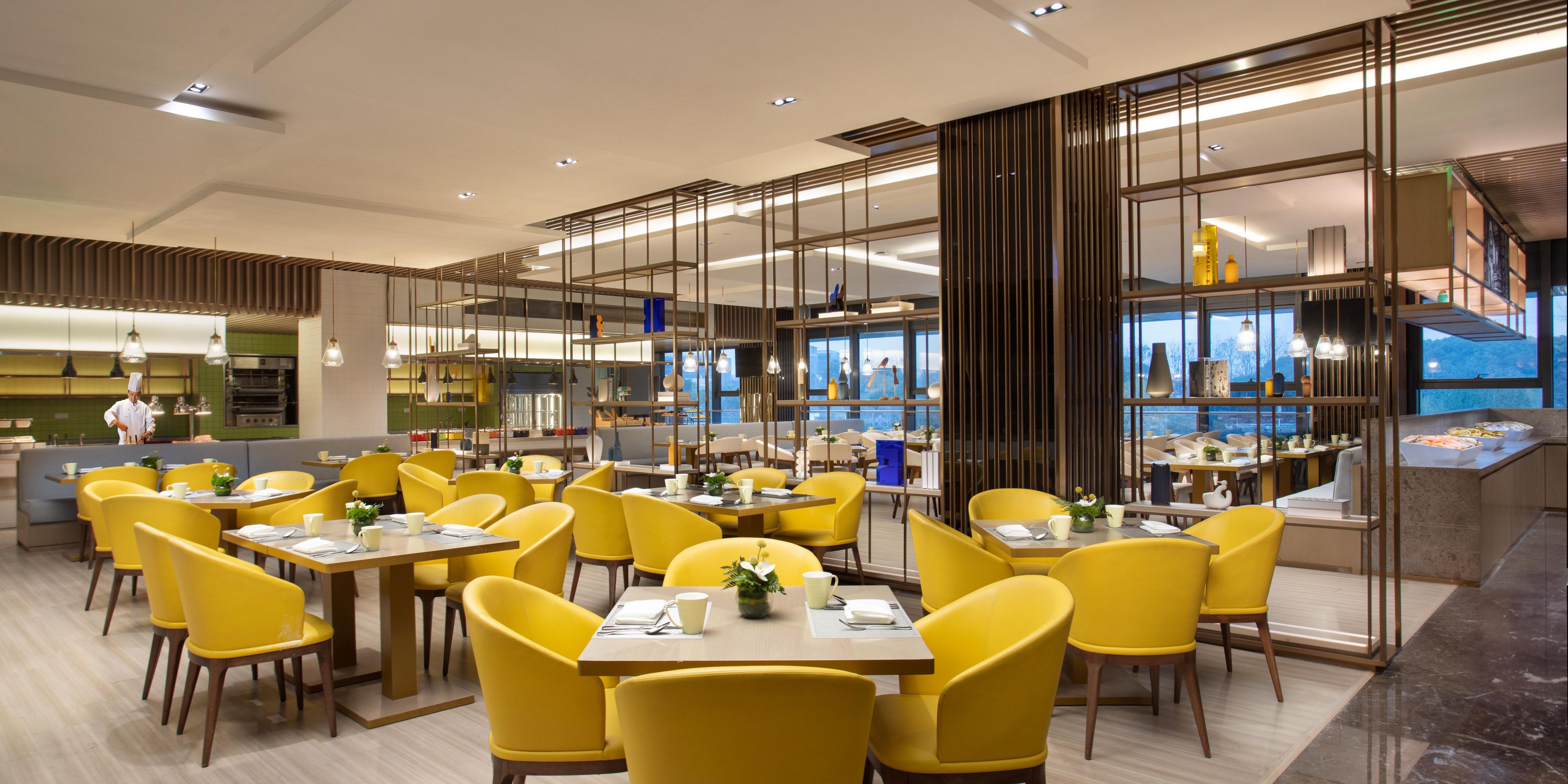全日餐厅位于酒店2楼,座位数98个,餐厅环境宽敞明亮干净整洁,提供美味的中西式自助早餐和全天零点服务,营养搭配,种类丰富,口味多样,是您与家人,朋友共进美食的理想之选。