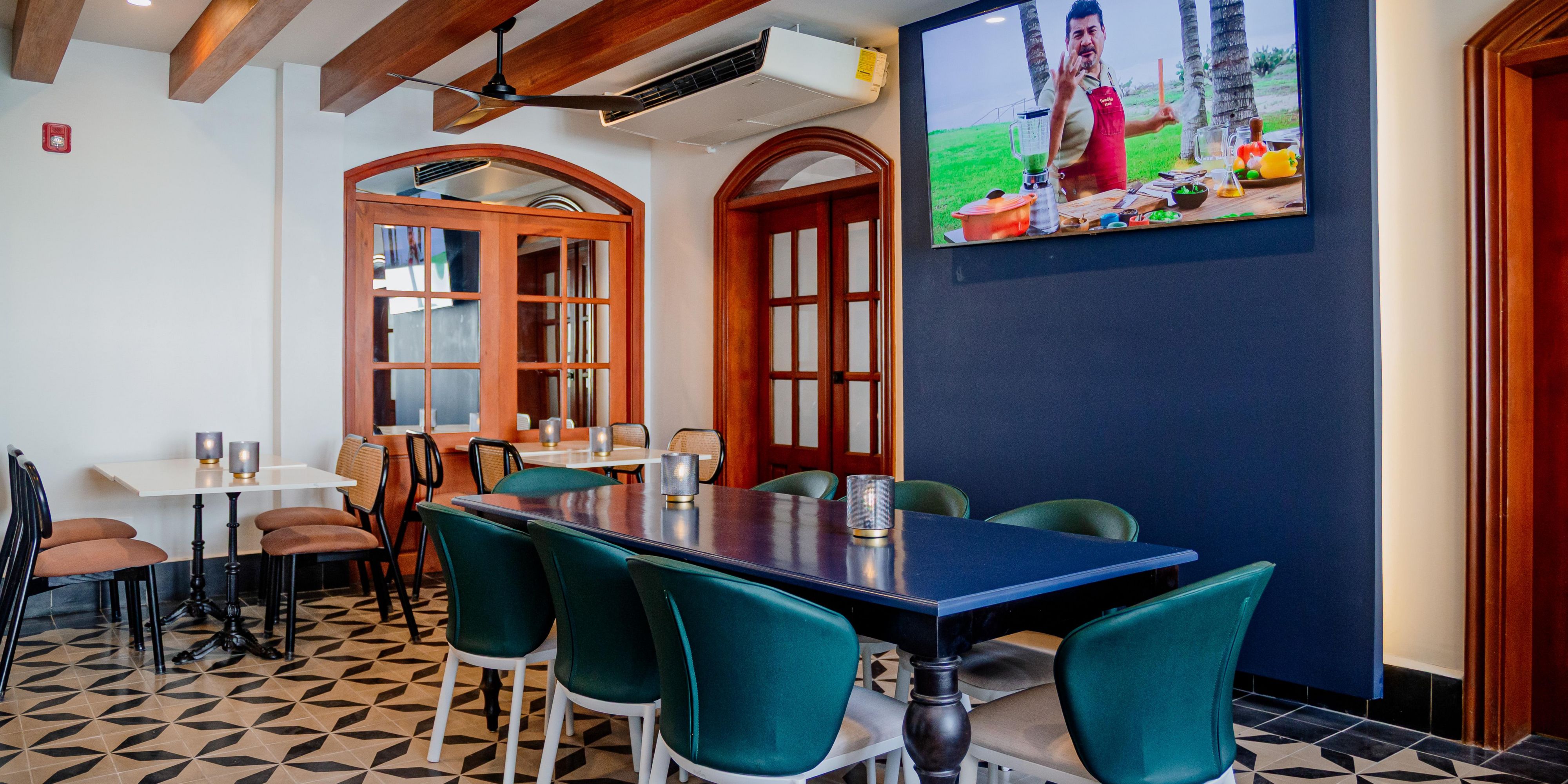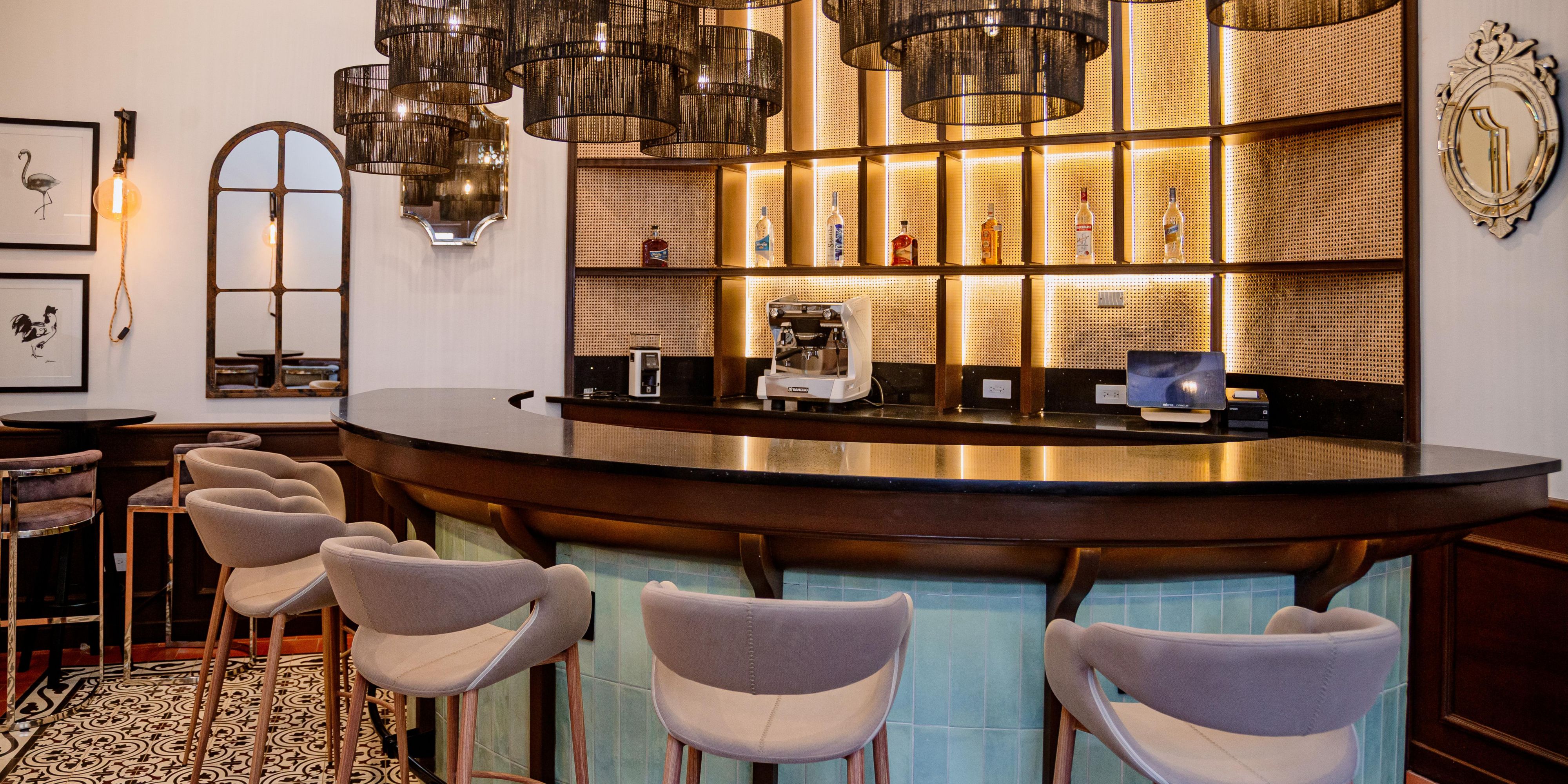 Cozy and modern bar area where you can enjoy Nicaraguan cocktails in an air-conditioned environment with comfortable tables.